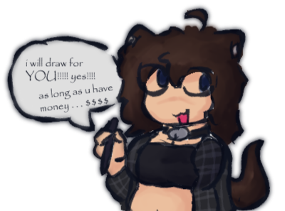 Just for the record, doodles will be like kinda like just simpler flat color drawings, since I don't really have any recent drawings like that i can't really show what i'm offering but i hope that explains it enough